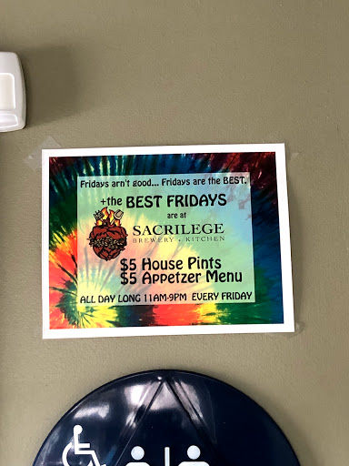 Joe is constantly brewing small batch beers and the menu NEVER gets stale! The staff is pleasant and efficient at helping you decide which beers, ales or ciders might best fit your likes...or ask Joe to prepare a flight of beers and mix it up a little! Pets are welcome on the porch or outside as long as leashed. Its a FANTASTIC brewery and bistro with food that has been carefully thought out, using local FARM FRESH FRUITS & vegetables. Bravo...great food and great beers that awaken your taste palate, right on MAIN STREET--not in the middle of the madness--with no traffic congestion.. ...just us locals who like to wander downtown to eat N greet. THANKYOU SACRILEGE BREWERY & KITCHEN