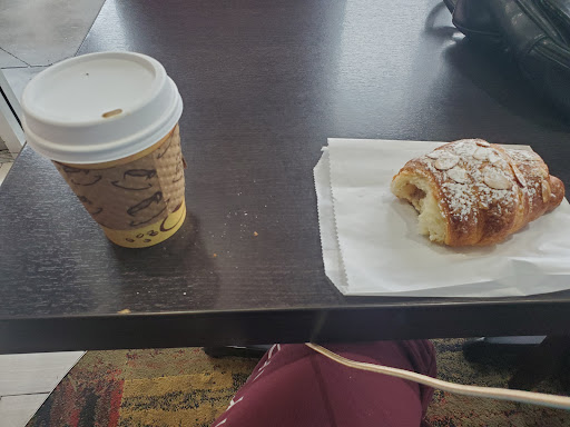 I love this place. Its very cozy inside with nice art work on the walls. The seating is very comfortable, although I wish there was a little more space inside. On a nice day or night they have seating outside as well. Their menu looks nice with many options. I watched them making crepes while I waited in line. They looked delicious! I ordered a large americano with a slice of chocolate cake. My drink came in a really nice ceramic cup and tasted phenomenal. To me, theyre bean selection is of really good quality. The slice of chocolate cake was rich and flavorful and complimented my drink. The service was outstanding and helped round out my experience as a great first time that will have me be a repeat customer. Its location is great since its downtown next to the theatre and many restaurants. This place is a great way to start or end your day!