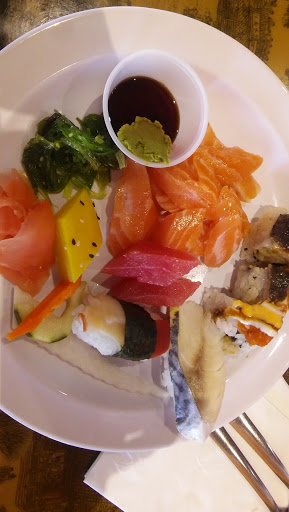 You know, Ive always driven past this place and thought how delicious a "sushi buffet" would be. And so, I finally decided to eat lunch here with the boyfriend. It was quite confusing trying to find parking because Ive never been around this neighborhood. The street was very busy and seemed really hectic. We ended up parking in the movie theatres parking lot and walked. First things first, its like 16.99 for a person around lunch/dinner time. Seems like the norm for buffets. When I walked in, the workers were friendly and greeted us well. The buffet had a nice big window with a view over the busy street so it must be nice around night time. But as I looked at the buffet overall I was greatly disappointed. It was actually quite small, and wasnt some amazing fancy sushi buffet at all. It was a normal Chinese buffet with stale desserts and some sushi. It was every other buffet, not a specialty SUSHI BUFFET. It had its typical chow mein, fried rice, potstickers, etc. stall and another stall for seafood. Everything tasted merely "okay". Also, the "frozen yogurt" machine ran out of vanilla and only had chocolate. But that didnt matter anyways because their "froyo" tasted like water. If you looked around more you would find much better buffets with amazing food including sushi. Dont expect to have the most amazing sushi here, you wont. Im only giving two stars for the nice workers and the bus boy and manager who were seeking tables like hawks for empty dishes and promptly removed them.