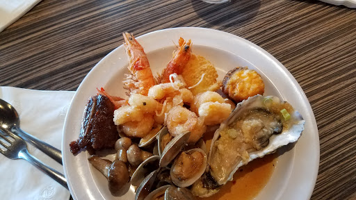 Went at lunch on a weekday with my mom who sampled all the seafood and rolls and declared them good. I generally try to avoid buffets like the plague and I dont eat seafood, so these are my biases that you can take into account. The chicken teriyaki was diced as opposed to the skin-on cutlet style that IMHO is more authentic. The tray labelled pork had sesame balls in it. the chicken with mushrooms and the chicken with broccoli were fine, although the steamed rice had some dried crusty bits in it that wanted to crack my teeth. For dessert, the fruit selection was fine. The cream puff outsides were _not_ soggy but the "cream" might have been more cool whip than pastry cream. The soft serve also seemed to lack the expected amount of dairy.
