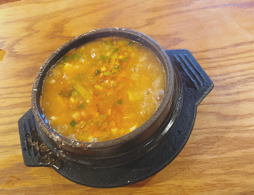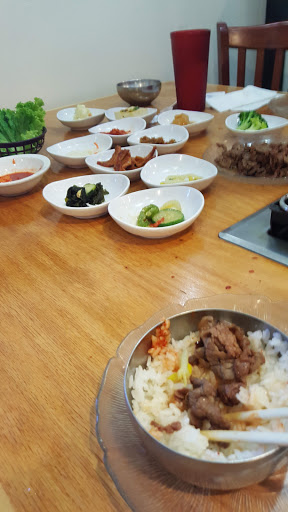 First time here - first impression the place was clean. Staffed by friendly and welcoming People. The clientele appeared to be mostly Korean aside from myself. They serve at least 12 little side dishes which were all pretty good. The Bulgogi was not the best I have had but was pretty good. Overall for the area I give this place 4 stars and will be going back again.