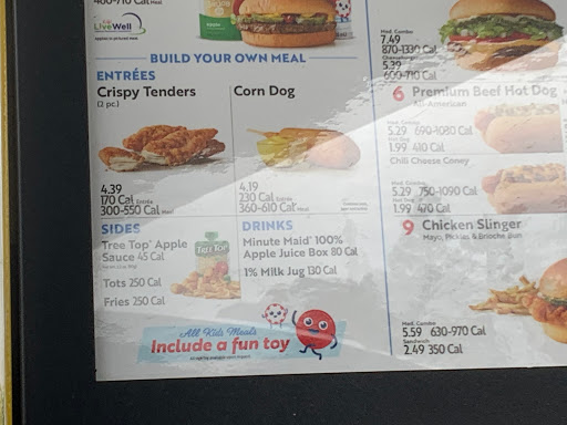 Pretty good fast food. Tips: Happy hour is 2pm-5pm which means drinks and slushes are half off and corn dogs are $1. Plus milkshakes are half off after 8pm during the summer.