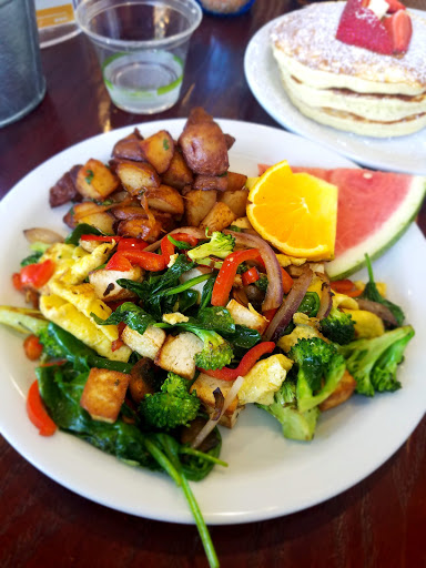 Its an order at the counter kind of place, but they still have a number of helpful wait staff. There offer Tofu as a protein option. You can get a Tofu scramble for breakfast or brunch, but its more like a veggie saute. The homefries are great, as are the cookies!