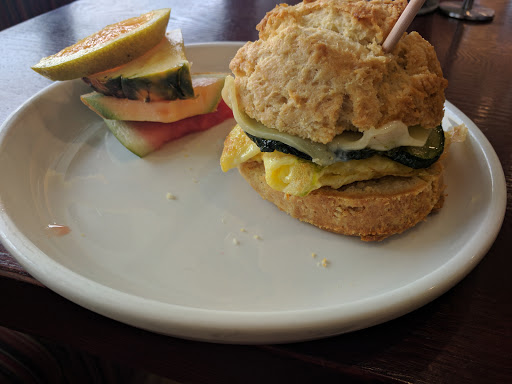 Great for weekend brunch. I havent been here for any other meal. Hayward suffers from a lack of good brunch places, so I highly recommend this if youre looking for brunch fare with a side of mimosa or a local craft brew. Seating is cafeteria style, and tables turn pretty quickly. Theres usually a line on weekends, so I recommend going early. They are also attached to the Hayward historical society or something? Theres a museum entrance inside the restaurant.