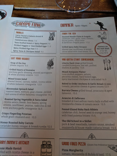 A great setting and good food. If you are looking for a place to have a good drink and great time with friends Campo Fina is the place. With an outdoor seating area, a full outdoor bar and a bocce ball court Campo Fina is the perfect place to go to.