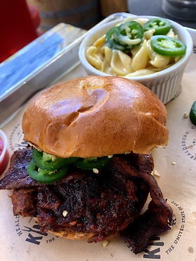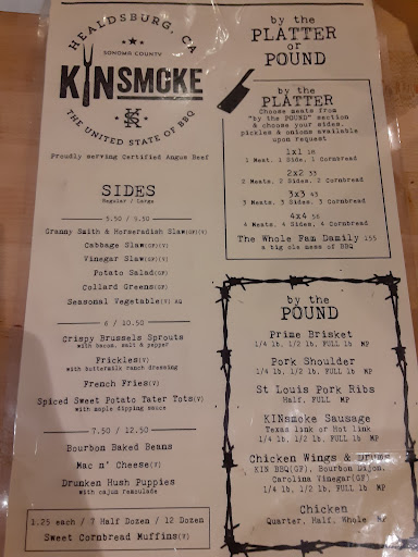 Great pork ribs, brisket and potato salad. Service was fast and friendly. Nice selection of local wines by the glass. I would recommend KINSmoke.