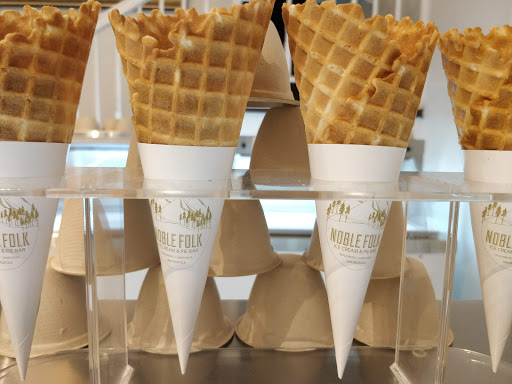 Noble Folk has superb ice cream. They are always changing their flavors. They have a good selection of toppings. My only problem is they do not put very much of the topping you order on to the ice cream. They also make amazing pie and have an interesting selection of other buyable things like slingshots and Foodie Dice.