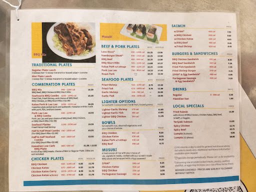 Good example of the Hawaiian BBQ places. The chicken Katsu, and Barbecue plates are tasty. I believe the place is cash only.