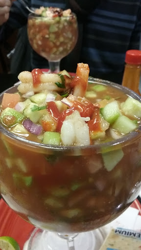 The BEST, authentic Mexican food in the area, and it is usually busy. Their signature dish is the most amazing shrimp cocktail. It ran us $18 but it was worth it: huge, lots of big, fresh shrimp in a zesty cocktail sauce with chunks of tomato, celery, cucumber and onions, and served with saltine crackers. It was reminicent of ceviche. So good! We also had the shrimp enchiladas with green chile sauce, which was also good. There were lots of happy families dinning together. Festive atmosphere, a soccer game was on, and also Hispanic music playing. Dinner and drinks, $45.