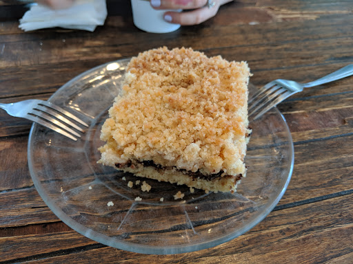You know sometimes when the coffee is good, but the atmosphere just doesnt vibe? This is what this place felt like today. Definitely a very busy, popular coffee shop especially with the locals. Its a bit larger than most coffee shops I enjoy, and lacked that cozy/intimate vibe. If youre into the more open and busy environment while enjoying a cup of Joe, then you may truly enjoy it here. Different strokes for different folks. I felt very rushed during deciding which pastry and coffee to try, since my first time here and they have 3 chalkboard with menu items written very, very tiny. I decided on the chocolate raspberry latte with a coconut pastry. The coffee was actually very tasty, but I would opt for a different pasty. The pastry was overwhelmingly sweet and had a dense cake on the bottom. They really cater to the vegetarian/vegan community and have an assortment of friendly options for sandwiches and pastries. Good coffee, just the rushed environment and overly sweet pastry left a bad aftertaste.