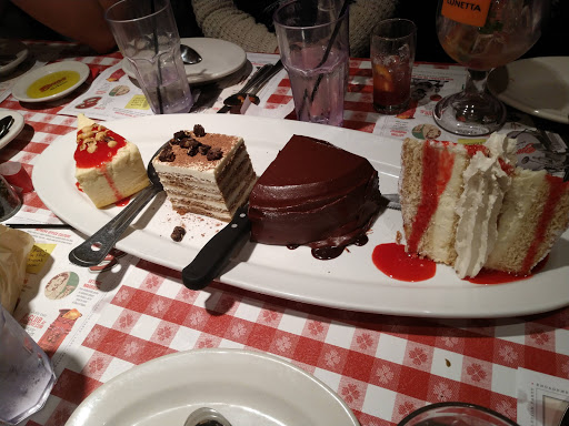 We were treated to a dinner here last week and it is just lousy. I remembered why I hate Buca di Beppos. First we ate in the Pope Room, as a Catholic I can say it is kinda weird... I mean I can appreciate all of it. But since I am guessing most people are not Catholic dedicating a room to the Pope is odd. In fact we were among the last to arrive in the party and the poor protestants we were supping with had already had the bust of Pope John Paul II removed from the room. I have seen it before, and having the Popes head in the middle of a lazy Susan is kind of creepy. We were a large party, but that doesnt excuse the slow service, it is not like we didnt have reservations. Or that since there is a room constantly booked for large parties, they should be properly staffed for it. Especially if when it gets close to the time for the next party they are rushing you out. Come on, if it didnt take forever to bring the order wed be gone naturally. Food was poor to mediocre at best. The selections were Spaghetti and demolished meatball pieces, Chicken Parmesan and Pasta Alfredo. The Alfredo was simply inedible, how can you go wrong with pouring a box of Spaghetti into boiling water and the Chicken was actually edible. There was also a salad and horrible cheesecake type something. It didnt taste like any cheesecake I have ever had. There was no crust, and tasted like it was missing salt and other ingredients that bring out the flavor. Maybe it was some kind of healthy, sugar free, salt free, gluten free dessert substitute. So I was seated near the host so I saw the bill, so for 3 bowls of salad, 3 bowls of each of the 3 entrees, and 18 slices of wannabe cheesecake it was $568 including tax and tip with soft drinks for some of the people. No alcohol that I saw was served. Thats more than $31 per person!!! Sorry I wouldve come a little unglued if I were paying for that... For $50 I could go to Costco and buy a lot more and better frozen Italian food that could be thrown in the oven and taste 100x better. Even pick up a $6 box of garlic bread with 27 slices. Yeah I would have to work a little to cook it, but for $500 it would be worth it. Parking was awful, we circled twice and were late to the dinner, so we just parked in the "to go" spot, nobody said anything. One last humorous event, before the kicked us out, someone stopped by with a digital camera and had everyone bunch up on the far side of the dirty table and took a picture. Then came back with 4 pictures with a Buca di Beppos border around them and said we could buy the pictures (which are going in the trash if we didnt anyway) for $10 each. Really??? We took pictures at the event ourselves and for a couple dollars I could print everyone at the table 8x10 photos if they wanted.