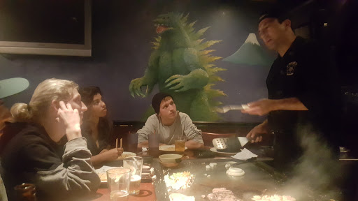 Initially I tried to make a reservation but unfortunately, they had another large party coming in so they told me to either choose an earlier time or a later time. Since we had a large group, I had to double-check with the group if this was ok. I had a friend call in and make the reservation. Lo and behold, he was able to get us a reservation for the time we wanted for teppan. When I called, they didnt give me the choice and Im assuming the other large party was for the sushi area. So definitely specify when you make a reservation! Our group wanted teppan so we happily snagged the 7 pm slot. The restaurant is located on PCH by this motel and parking is valet but you can try your luck parking on PCH. Once inside, I went to the back bar to meet my friends. Free shot with Yelp Check-in! The night was off to a good start. Apparently they have all night happy hour on Mondays and Wednesdays, double score for us. As far as teppan was concerned, we saved $10 off with the happy hour special of pick 2 (any combination of NY steak, chicken, shrimp, or calamari). I opted for the NY steak (medium rare) and shrimp. With our meal, we also received salad, soup, fried or steamed rice, vegetables and noodles. It was a lot of food and I was starving. They even accommodated my friends request not to mix her seafood with meat as she has some food allergies. The food was delicious, but maybe its because I was starving. I also tried some of my friends Nigori cold sake and ordered a Kirin for myself. I thought I had ordered the draft but out came a bottle instead. No big deal since it was happy hour pricing. If youve never been to a teppan show, youre in for a treat. Our chef and server kept us entertained throughout the evening. Our group had a great time. I can see how this place can get rowdy on the weekends but when we were there, it was quieter. It definitely depends on the clientele.