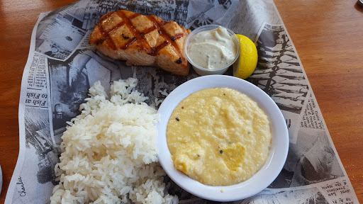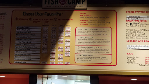 We were very glad we gave this place a second chance. Today our shrimp & salmon Were perfectly grilled, our sides were delicious, everything came hot to our table. Last week my Alaskan Halibut $24.95 was the size of a deck of cards (maybe). It was prepared blackened which tasted like burnt chili powder, no flavor. My husbands salmon was very dry. The staff is friendly and gives great service. Were hopeful that Fish Camp will turn out to be one of our lical favorites.