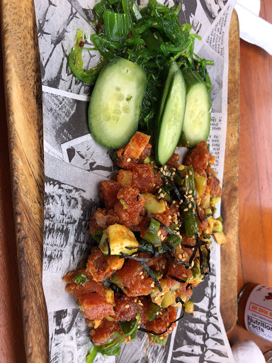 1 block from Sunset beach, this indoor/outdoor corner seafood cafe couldnt be any simpler to dine on seafood. They structured it in such a way that makes even the pickiest eaters enjoy a great seafood meal. Its simple; walk in, choose the fish you like from like 15 different kinds fish, then decided..."do I want my fish as a salad; sandwich; tacos; or a plate. Ive tried the sandwich and tacos versions and it very tasty and filling. But thats not all, dude these guys have the tastiest fried calamari and sourdough bread. Sucks, the bread is extra for a half or full loaf, but totally worth it. Lastly the price are actually reasonable...it is seafood after all. You and another, if you like to eat will probably spend about $40-60 easy. Individually though maybe $20-25. BTW, they charge I think a 4% service charge in the total because its not a traditional restaurant style place. You just order and sit, you get your drink, theyll bring the food and clean up (i.e. theres waiters but theyre not specifically waiting on you). Anyways, great place for quick, casual, great tasting seafood.