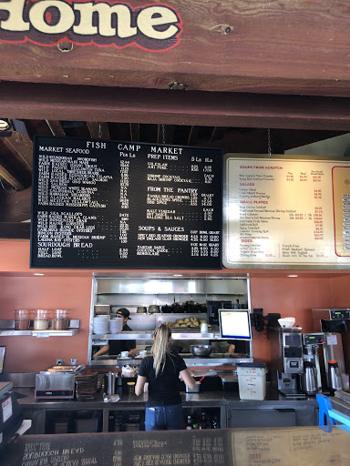 We were on a vacation to L.A. and stopped randomly at Fish Camp while driving back from Huntington Beach around 9 pm, exhausted. Normally when I see "market price" for seafood on a menu, I know Im about to get kicked in the pants - but not here! We got swordfish, trout, shrimp skewers, and a few other meals for $10-$12 for 8 oz fillets. They all came with two sides and we had TONS of food. It was great, too. We ate every bite of the fish - especially those prepared blackened, I couldnt get enough. Really good food, cheaper than I expected, and a clean, fun atmosphere. Oh, and the clam chowder was great, too.
