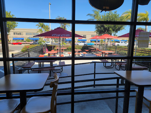 Plenty of seating inside and out. The ground beef is better than any other fast food burger joint around. The fries arent greasy, fortunately. Havent tried the hot dogs but my nephews like them. Can be hard to find parking in this little strip mall -- look for extra parking along the back outer edges of the lot.