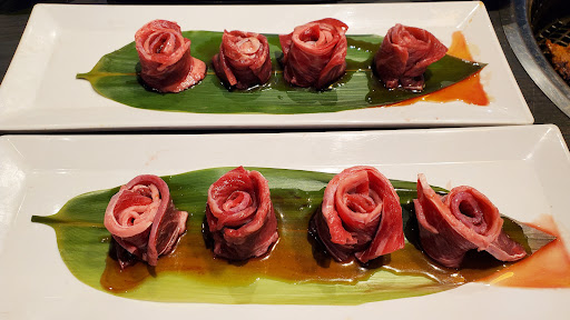 Summary: All you can eat for $30 is a pretty good deal given the quality and quantity of the food. Tastes and textures were pretty good. Service was rapid in bringing out food and laying out "the fine print" (the latter being a bad thing). Wouldnt recommend coming with a large party unless you have a system for managing the grill already in place. Grills need to be changed out more often. My family and my sisters fiances family merged for a 13-person dinner on a Sunday at 5:30pm for her birthday dinner. We arrived around 5:20pm, but ended up waiting until 5:45pm for the tables to be ready (even though they were in the back room, where no one was currently sitting). Not ideal timing since there was a young child in the group that was ready for his din din. We were given two booths for all of us. Which meant one booth had 3 and 3, and the other had 4 and 3. Not spacious really, and each table had one grill, so that meant a lot of hands going to the grill and not a lot of table space since there were plates, sauce trays, glasses, etc. already there. Far from logistically ideal. We were given some menus and told that the happy hour all you can eat price is $30/person. It was encouraged that that be selected, so everyone agreed to go that route for simplicity. We were then told to look over the menu and decide the stuff we wanted. After reviewing, we had an idea, but then the server told us she would just bring two orders of each meat so we could get a taste of everything. Heres where things got kind of sketchy. She basically selected the food for us, minus some of the appetizers we asked for, but after telling us shed bring out two of everything (many of the dishes we would not have ordered normally), she then said wed have 90 minutes to eat everything and anything left wed be charged at the "a la carte" price for. Itd be one thing for us to get charged for extra food we didnt eat if we specifically ordered it, but to be told that AFTER being told what shed bring for us anyways, was just wrong IMO. This left a stain in our heads throughout the meal that we would have to finish everything or pay extra. Whether it was true or not, I cant say, but just having that constantly in the foreground throughout a celebratory dinner is far from an ideal experience. The food started coming out. Plate after plate after plate. As wed start to put stuff on the grill, more food would arrive. Wed have to shuffle things around to make space, and then our food would get charred on one side. Wed try to get those things off the grill and more food would arrive. Wed play the shuffling game again, and our food that had been removed wouldnt be hot anymore. The pacing was just not working for a large group that didnt have a system for how to manage all the items while ensuring everyone got fed. They changed the grill once, but then we had to ask for it to be changed a second time once it was loaded with burnt food that we couldnt remove in time. I tend to be able to eat a lot of food, but I felt like I didnt eat nearly as much as I normally would because I was in the middle on one side and trying to make sure everyone got food and that the stuff on the grill didnt overcook. I ordered one plate extra for myself, but I didnt want to do more since everyone was finishing up and it would look strange for me to be the only one still eating a bunch. Ultimately, it was a decent first Japanese BBQ experience, and I appreciate the potential of Gyu Kaku, but I felt like the restaurant either couldnt handle us properly, or the servers didnt pace things right for us to have a more relaxed dining experience. Either way, Im not sure if Ill come back. If I do, it definitely wont be with a party bigger than four people.