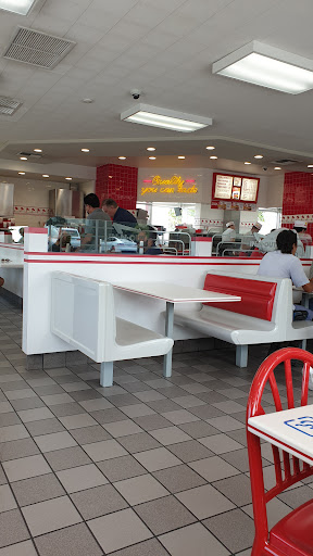 They great thing about In N Out is that I have rarely had a bad experience in one. I would give this place 5 stars for the food and dining area, but the parking is a zoo, mainly because the drive-thru line wraps back into the small parking area that they do have. If the restaurant even hints at being busy, I would suggest parking in the very back of the Walmart parking lot (closest to In N Out of course) and walk an extra 60 seconds to the restaurant. I have never seen a sign that says "No In n Out parking here." It will save you time and headaches if theyre backed up with customers.