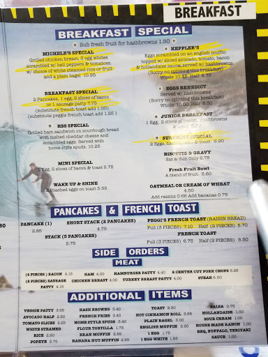Excellent breakfast in the heart of Huntington Beach. Best Cinnamon Rolls in Orange County! Theyre the soft gooey kind. I highly recommend Kepplers special. Also their omelettes are amazing. Theyre French style, folded over omelettes with the ingredients in the middle, rather than having the ingredients baked into the eggs like most places do. Their shredded hash browns are nicely seared with butter. The coffee is average. By the way they have a back patio, in case the front patio is full.