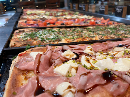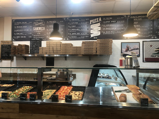 Un pezzo di pizza come se stessi a Roma. Qui la trovi. Il prezzo è 2,5 volte. Ma senti il gusto dellItalia.