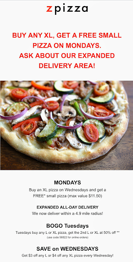 this is the best z pizza location and they make the best pizza weve eaten in years! the staff is excellent and the owner/manager(?) is cute.