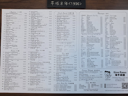 This restaurant have really good Noodle based food. They have special TO-Go menu. One of their favorites is "Ajisen Best Combo Ramen". Sometimes there is a line to take a table specially during weekend dinner time, so keep that in mind that you may have to wait for a table. During weekends they open till late around 11PM and staff is friendly. Kids and Family Friendly place. Located at Diamond Jamboree, Irvine CA.