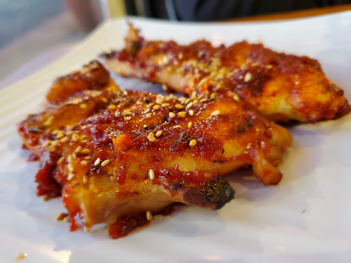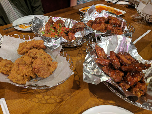 BBQ Chicken is Korean food? What? The name always throws me off. Especially, if you are looking for some Southern Food. This is a different kind of Seoul Food. I was a bit skeptical at first, because the idea of Olive fried chicken is about as appealing as a Diet Coke. I always cook with Olive oil, but I hate to break it to you (health nuts) but deep frying in Olive Oil is the same as any oil. If you use gallons of oil, theres no health benefit over vegetable or canola. Also, vegetable oil has a high smoking point making it ideal for frying, but Olive oil will taste like burnt candles if heated over a certain temperature. I promise I will not bore you with anymore food science. If you are trying to stay health by eating Olive Oil fried chicken, go somewhere else and peel the skin off or dab your pizza, because this place like a diet soda IS NOT HEALTHIER. Also, be prepared to pay a butt-load for Fried Chicken which is normally a relatively cheap food. To be honest with you the food at BBQ Chicken real isnt that bad. Every time I go the restaurant is packed and has a decent atmosphere. I never really had much trouble with service. The servers try to be extra friendly, but I have heard complaints about servers that dont give much service to women. Thats understandable haha jk. Sometimes women tend to get jealous of other women... However, for the price and the value. The chicken Meh! A whole chicken cost about 20 dollars roughly after tax for about 8 pieces. It is not finger licking good. I hate to copy another review..but go to KFC instead. Personally, after eating I felt like driving the 15 or 20 miles to go Popeyes instead. $20 probably would get a nice 20 piece bucket of spicy Louisiana style friend chicken. If money is not an issue and you are looking for Korean food with a twist, give it a try. If you are looking for Fried Chicken, go elsewhere. Sometimes Korean Mixes are good like Amerie, very hot! However, BBQ Chicken is not recommend for hardcore Fried Chicken lovers.