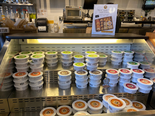 Ordered a big order online the night before and came to the store in the morning and it was all ready and correct. Staff was helpful making sure we had everything (napkins, plates, knives, etc.) . Even if you just want a quick breakfast snack in the morning this place seems to be able to get you a delicious bagel in a reasonable amount of time. Store is clean. Parking is kinda crazy at times.
