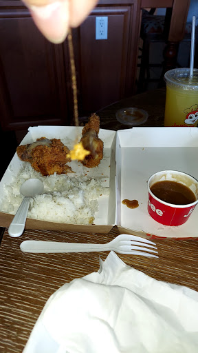 I like their Filipino spaghetti and fried chicken! Jollibees fried chicken are juicy, crispy and hot fresh served with a side of gravy. Love the spaghetti here, its cheesy, has a nice Sweetness to the tomatoe sauce (not candy sweet), great texture of the hot dog, sausage and beef mixed in the sauce. Inexpensive fast food.