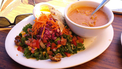 Love this place. I generally hate healthy food and love my meat but this place is delicious. I like the intimate patio after dark too. The sweet potato fries are the best and so far weve tried the Chop-chop Chef salad, the Baja Fiesta Salad and the All Hale Kale salad. All were soooo good. It even inspired me to go and make myself a kale salad at home too. All the flavor and none of the guilt!