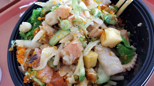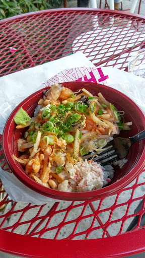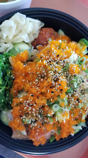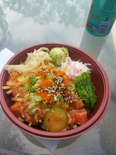 This place is small and you cant even tell there is a restaurant there as it is the middle of a bunch of office buildings. The poke bowl is amazing. The fish is fresh and you have your choice of brown or white rice, salad, 3 fish choices for the small bowl and toppings. I like to get half rice and half salad.