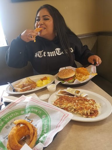 Barn burner add bacon. But seriously its expensive and a treat style place. Some people come all the time and its like a top of the line Char burger joint. Everything from pancakes to fish and chips. Dont get the onion rings they assembled in a wierd way not like God intended.