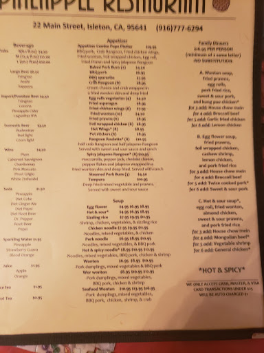 This restaurant is actualy located in Isleton CA, appr. 5mi. north of Rio Vista on Hwy. 160. How ever they do have great food and are very friendly. A place that everyone should try while living or visiting the delta.
