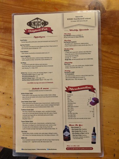 This rating will stay at a 3 star until they hire a great cook. Not a subpar cook. Some one in town recommended KRBC for a beer and french fries for the kids. And even offered for us to the garlic and cheese fries. My kids havent eaten french fries since new years. So this was going to be a treat. To our dismay. The fries were a bust. Crisscross or waffle fries loaded with raw garlic and a little cheese. RAW GARLIC. Really. Thank you. My kids dont want fries for the rest of the year. The class 5 beer was delicious. Class 10 a little sweet. Blonde was aok. They have a lot of ipas I didnt try. Nicole our waitress should of taken off the crappie fries. Just saying. Its just fries. The chili was a hit. We bought some to take back to camp site and make chili nachos. We added fresh green onion and queso. Chili was good. It even had Mexican corn in it. Will be back for the beer.