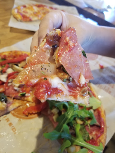 This is kind of like the Chipotle of pizza. You tell them what toppings and sauce to put on your personal ~10 inch thin crust pizza, choosing from behind the glass, and they fire the pizza in a big oven. I didnt know this when I first tried it, but you can put on as many toppings as you like. You could just load it up if you do the choose your own variety. I went with one of their standard pizzas and was pretty unimpressed with the result. But its pizza, so it wasnt terrible.