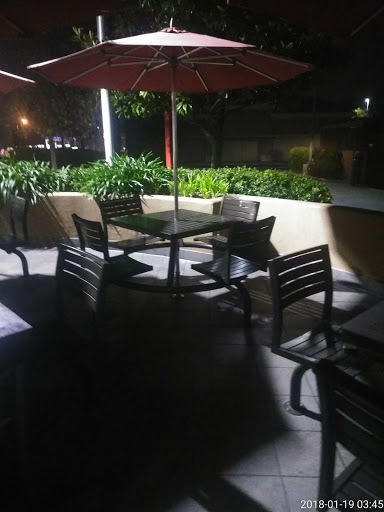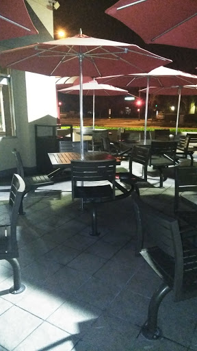 Food is good but the location and the speed of the service is terrible. The line is generally 15 people deep the line can get confusing at times because people try to form a line from east and west entrance. Walking in looks no better u can see long line as u go thru drive thru. Inside seating is full oitside seating full. Its always s max capacity. Noisey as all the tables are full. Theres even a line to get beverage. Not good for quick bite. If you choose to eat there is noisey tables dont get wiped during peak periods. They no longer come out with head sets to get your order.