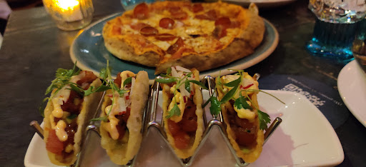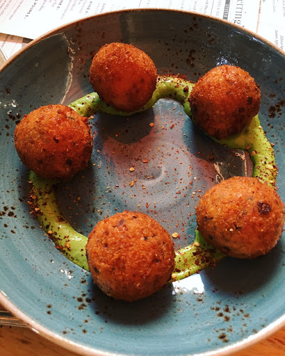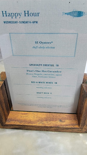 Nice decor, atmosphere. Avoid brussel sprouts too much balsamic (burned?) on outer layer. Flat bread was average think grocery store frozen and heated. Wine was awful and they tried to bring me a white wine and say it was a Cabernet Sauvignon. Had to tell them no, that doesnt make sense. We also were told incorrectly two different oyster types were the special of the day. Our server turned out to be wrong and the random server checking on us quoted us the correct oyster special. Too bad we relied on our waiter.