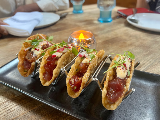 I cant say enough to express how good this place is. To start the atmosphere is very upbeat and I think they have a DJ or live music every night. The decor is awesome with live trees inside the restaurant which is a cool touch. The service was some of the best we have had and that was all 3 times we went here on this trip. The food is really on point, make sure to try the fresh fish appetizer that is served as a whole fish sashimi style and also if you like lobster then get the lobster roll sandwich for lunch. You really wont be disappointed by this place.