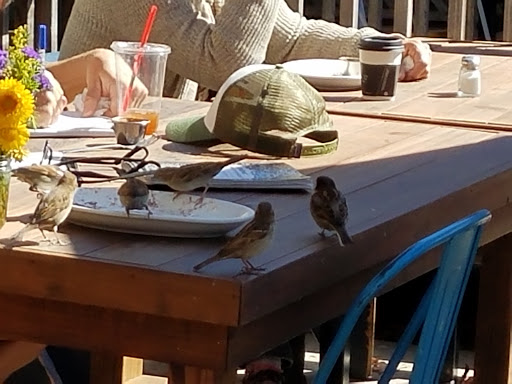 We havent been in the area for a while so it was good to drop by for cappuccinos and a light lunch.Its always pretty crowded on Sundays around midday but you never wait long to get service.We got our coffees and a ham panwich on sourdough to share.It was nice to sit out the front on the patio and enjoy the atmosphere.The cappuccinos were pretty good and the sandwich was okay...their sourdough here is the same as the one at the Encinitas location....very dry,almost stale.I dont know why they dont use fresh ciabattas or something.The choice is sourdough or wholewheat only.Well remember not to order a sandwich next time we are here otherwise everything is fine.