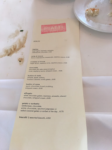 I have lived here for years and my favorite favorite place to eat is Piattis! You can show up after the beach with flip flops on or for a special occasion in full cocktail wear...you fit in and feel comfortable. The food is perfect! I love the bread dip best. The staff is friendly and honestly, I just cannot say one bad thing! My favorite place to eat in SD and LJ!