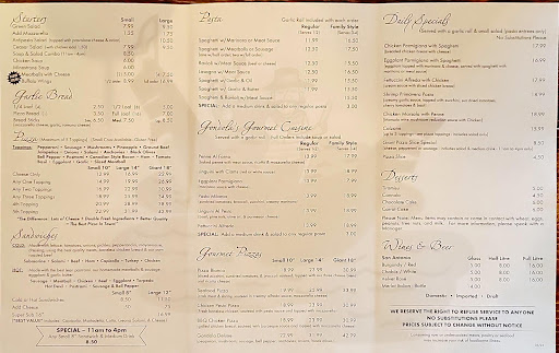 First time here..long time lurker. Ah pizza, the many variations you come in..some cheap, some very overpriced and well some that just tend to hit the mark. Well, that is what Gondola Pizza aims to be and so far its working. Came by last night after watching Jurassic World and figured we needed something to fill our stomachs after watching Ind. Rex eat all the other dinosaurs! We did carryout and ordered our Large pizza with 3 toppings..Pep,Sausage & Garlic. After looking at other reviews/pictures it seemed to me that there sausage was dominant for a reason and now I know why..the amount of meat ratio is ridiculous for what Id expect in a pizza and its worth the cost *prices range from $10-23 depending on the size* but its the ingredients they use that justify that cost. Sure I did notice sauce was a little light but I didnt care less considering how heavy the pizza was already from the toppings. The girls at the front counter seemed very friendly even though we were there just to pickup but we were given a good fair share of customer service. Yes I did notice that big groups tend to come here (sports teams,dancers,etc) so just be prepared that youre not going here for a romantic evening but more of a family outing restaurant. I cant wait to try more of their varieties like the seafood pizza with crab meat and shrimp to their interesting cold sandwiches full of Italian deli meats. They do serve wine/beer. although I wouldve liked to see some Italian beer on draft to pair with the meals they create but Im just nitpicking at this point. Check online for their specials and $1 pizzas..it does help!