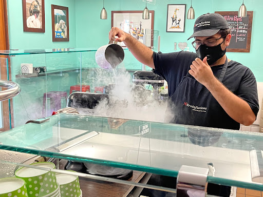 Absolutely amazing ice cream. The best mint ice cream Ive ever had - the literally crush fresh mint leaves to make it! The owners are super friendly, and will give kids little demos of the nitro. Its a quaint space with no indoor seating, but plenty outdoor. If youre in the area, do yourself a favor and try the place!