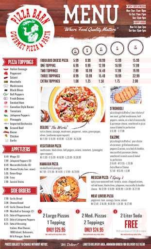 Loved pizza barns spaghetti meat sauce , fresh salad , big mug beer good deal friendly service .. ull love this place ...
