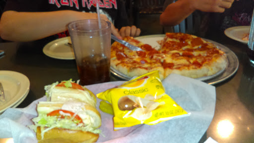 The atmosphere is fun for kids. It has old school arcade games, basketball game, little TVs with various games, a bar, TVs showing sports, and outdoor seating. The antipasto salad is okay, the pizza is not great. Its thick and doesnt have much flavor (this goes for any type of pizza Ive ever had from there).
