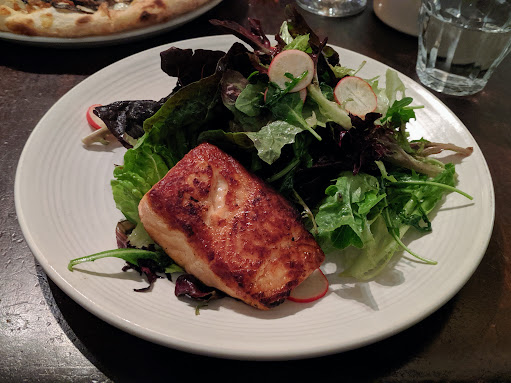 The food was tasty and the location is very cental and convenient. I was very impressed with the service from our waitress and all other staff we interacted with. The pizza melts in your mouth and I would highly recommend the burrata appetizer. This restaurant has an extensive wine list.