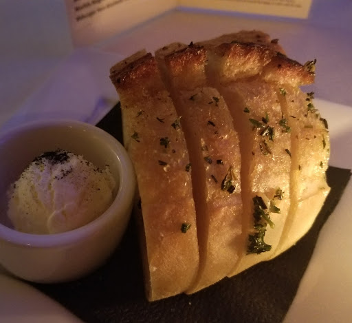 Friendly host + servers; definitely a lounge atmosphere but was quiet and charming. The food was absolutely delicious; started off with the house bread which is a garlic + parmesan bread (sourdough?). We then had the Wagyu meatballs topped on top of mashed potatoes (so good! 3 pieces) I had the Seafood Linguine (10/10) and my bf had the Duck breast with quinoa. I had the Savignon Blanc and he had the strawberry basil lemonade cocktail. Will come back again! One of my favorite restaurants in OC.