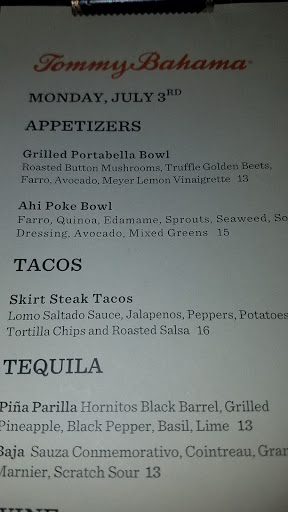 Let me start by saying that my family has been a regular at Tommy Bahamas in Laguna every Friday at 8:30 for YEARS! If we did not love the food, service and atmosphere, we would not have come back time and time again. So why the three stars you ask? Well, initially everything was great, my son would order the grilled cheese sandwich with fruit, I would order the Ahi Salad and my husband would get the taco plate. The fruit my son would get was great, full of berries and large helpings of them! The grilled cheese was cheddar cheese on two slices of large sourdough bread. My salad was huge and full of Ahi. As time went on, about a year or so ago, the grilled cheese suddenly became one slice of bread that was cut in half. We dealt with it because everything else was good. Then, the cheese became this nasty American cheese that my son would not eat. We asked for REAL cheese and they do put it in if you ask. I would call every week to reserve a spot at our time of 8:30, but about a month ago they started not taking reservations at that time, so we started having to wait about an hour to get a table, that was discouraging since we had been coming at the same time every week for so long. Then, last week, was the final straw! My sons half grilled cheese sandwich came with about half the amount of cheese, half the fruit and NO BERRIES! It was all cheap melons. My salad was about 1/3 the size as well. My son, who is 6, asked the waiter why there was not as much fruit and the waiter said he would get him some more if he wanted it. My son said yes, I would like more fruit. They brought more melon and then, when the bill came, there was an extra $3.00 for the fruit!!! OK, I get it, they have to make money...but at the expense of their best customer!