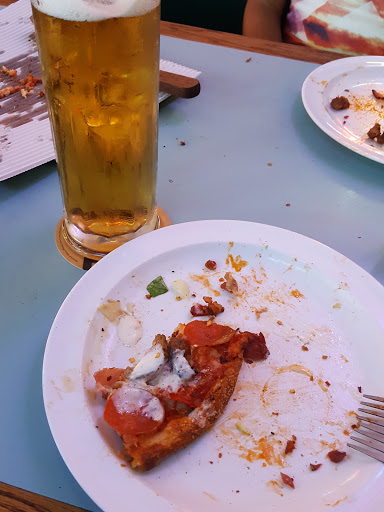 I seriously love this place!!!! The pizza dough and sauce are amazing. Im very picky about my pizza and this place is the real deal. No sugar pizza sauce here. Tastes fresh! Oh, and they have a great draft beer selection. My only minor complaint is that its a family joint and Im child free haha! But thats pretty standard with any pizza place.