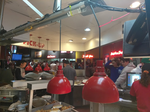 Decent burgers and salads, okay sides. Confusing layout, so dont be afraid to ask questions. Seating is basically picnic tables, and noisy TVs abound. Im sure that some folks like that sort of thing, but I am not a fan.