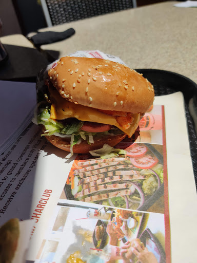 I like this place more than In N Out. The patties are bigger and only cost a little more. It gets crowded but not as crowded as In N Out. The parking lot for this shopping center is always crowded during lunch though. Staff is usually friendly and efficient.